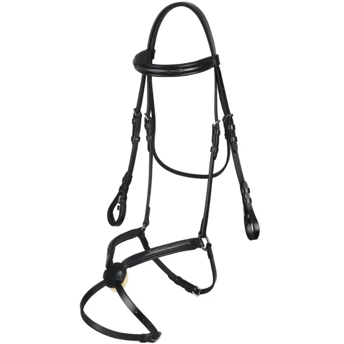 Komplet zawiera wodze parciane o szerokości 19 mm, które zapewniają stabilny i pewny chwyt. Parciany materiał dobrze leży w dłoni, również w trudniejszych warunkach pogodowych. Dzięki temu jeździec zachowuje lepszą kontrolę nad koniem podczas pracy. Wodze dla konia dołączone do zestawu sprawiają, że produkt jest gotowy do użycia bez konieczności dokupowania dodatkowych elementów. To praktyczne rozwiązanie dla osób poszukujących kompletnego i solidnego ogłowia meksykańskiego do codziennego treningu.