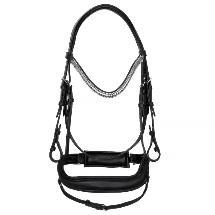 Ogłowie wykonane jest z wytrzymałej skóry bydlęcej, co zapewnia długą żywotność i elegancki wygląd. Wyróżnia się nie tylko funkcjonalnością, ale również eleganckim wyglądem. Pięknie zdobiony kryształkami naczółek dodaje mu wyjątkowego blasku. Anatomiczny, miękki nachrapnik został zaprojektowany z myślą o maksymalnym komforcie konia, zapewniając równomierne rozłożenie nacisku i wygodę podczas użytkowania. Dzięki takiemu rozwiązaniu, ogłowie nie tylko wygląda imponująco, ale także dba o dobrostan konia, minimalizując ryzyko otarć i dyskomfortu.