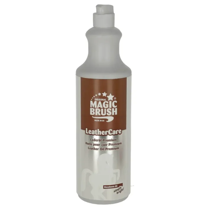 Olej do skór MagicBrush Premium 1L to profesjonalny preparat przeznaczony do pielęgnacji siodeł, ogłowi, butów oraz wszystkich wyrobów ze skóry licowej. Dzięki starannie dobranym składnikom olej wnika głęboko w strukturę skóry, czyszcząc ją i uzupełniając naturalne ubytki. Regularne stosowanie sprawia, że skóra staje się trwalsza, odporna na rozdarcia i przyjemnie elastyczna. Olej do pielęgnacji skóry pielęgnuje powierzchnie narażone na duże zużycie, jednocześnie przywracając im elegancki połysk. Wyselekcjonowane oleje chronią przed wilgocią i pleśnią, co zwiększa żywotność galanterii skórzanej. Obecność oleju makadamia dodatkowo wzmacnia efekt odżywczy i nadaje skórze wyjątkową miękkość. To idealny wybór dla osób dbających o estetykę i trwałość skórzanych akcesoriów jeździeckich oraz codziennego użytku.