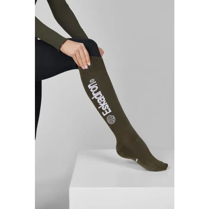 Podkolanówki z kolekcji Dynamic zostały ozdobione charakterystycznym napisem ESKADRON na łydkach. To detal, który podkreśla nowoczesny design i sportowy charakter produktu. Podkolanówki jeździeckie w tej odsłonie stanowią modny element garderoby, który świetnie komponuje się z innymi akcesoriami marki. To wybór dla osób ceniących elegancję w każdym detalu.