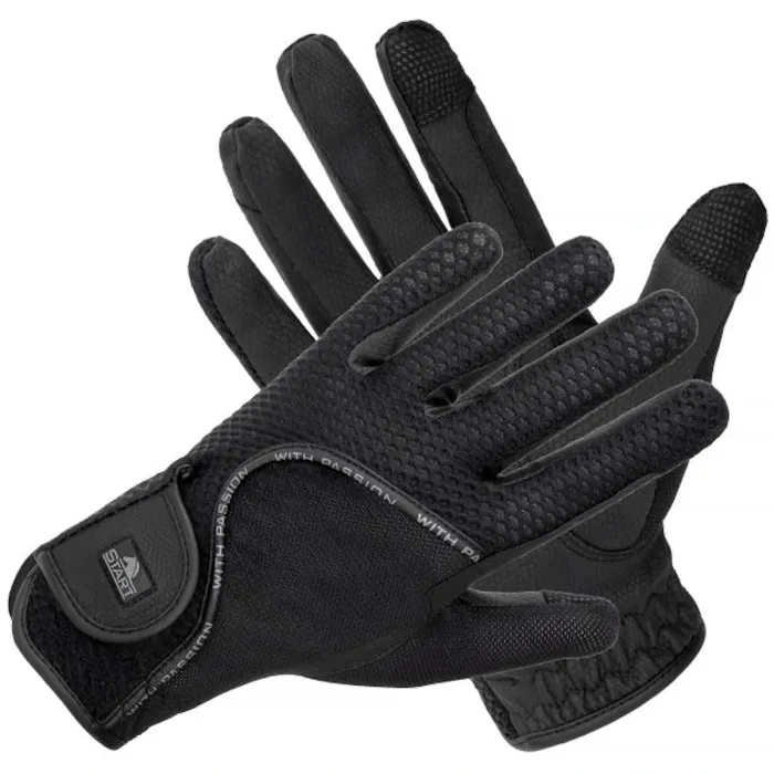 Rękawiczki jeździeckie START Morotai łączą w sobie funkcjonalność i sportowy wygląd, idealny na codzienne treningi i jazdę rekreacyjną. Dzięki zastosowaniu antypoślizgowego materiału po wewnętrznej stronie dłoni, zapewniają pewny chwyt wodzy i wysoki komfort użytkowania. Ich zewnętrzna część została wykonana z dwóch rodzajów siateczek, w tym jednej ażurowej, co wspiera swobodną wentylację i poprawia dopasowanie do dłoni. Dodatkowe wzmocnienia w miejscach trzymania wodzy zwiększają trwałość rękawiczek w newralgicznych punktach. Model Morotai umożliwia również obsługę ekranów dotykowych dzięki specjalnemu materiałowi na kciuku i palcu wskazującym. Zapięcie na solidny rzep z logo START gwarantuje stabilność i wygodę zakładania.