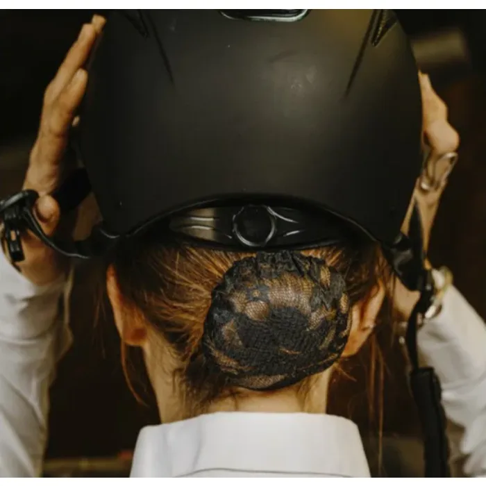 Siatka EquiTheme Dentelle została zaprojektowana z myślą o jeźdźcach, którzy chcą wyglądać schludnie i profesjonalnie podczas zawodów. Jej subtelna forma i czarny kolor doskonale komponują się z oficjalnymi strojami konkursowymi. Jest wygodna w noszeniu pod toczkiem, a jednocześnie nie rzuca się nadmiernie w oczy. To rozwiązanie dla osób, które cenią klasyczny wygląd i funkcjonalność w jednym. Siatka do włosów, która sprawdzi się w każdych warunkach konkursowych.