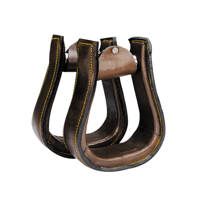 Skóra bawola pokrywająca strzemiona to nie tylko element estetyczny, ale także praktyczny. Zapewnia lepszą przyczepność buta, co zwiększa kontrolę i bezpieczeństwo podczas jazdy. Naturalna skóra jest trwała i odporna na ścieranie, dzięki czemu strzemiona zachowują swój wygląd i funkcjonalność przez długi czas. To doskonały wybór dla jeźdźców ceniących jakość i klasyczny styl westernowy.