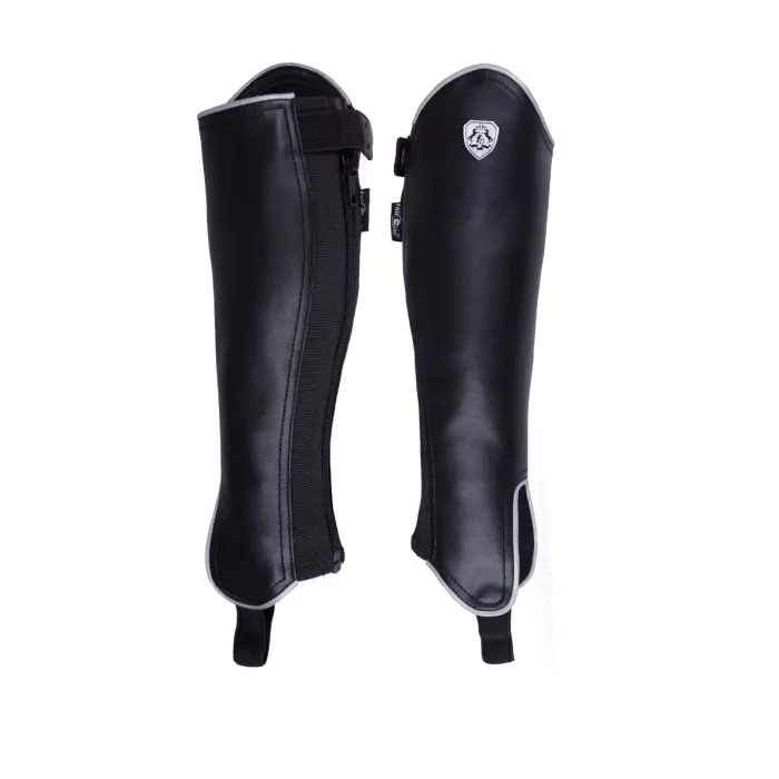 Sztylpy Fair Play Lumene Kids to propozycja dla młodych jeźdźców, którzy cenią elegancję i wygodę podczas jazdy. Wykonane zostały z delikatnej, ale wytrzymałej syntetycznej skóry, która nie sprawia trudności w pielęgnacji. Wysokie profilowanie w górnej części i podwójna elastyczna wstawka wzdłuż suwaka gwarantują doskonałe dopasowanie do nogi dziecka. Zapinane z tyłu na suwak, dodatkowo zabezpieczony praktycznym zatrzaskiem, zapewniają komfort użytkowania. Ozdobna metalowa blaszka z logo oraz metaliczna wypustka dodają im wyjątkowego charakteru. Sztylpy doskonale komponują się z każdym rodzajem sztybletów, co czyni je uniwersalnym elementem stroju jeździeckiego. To praktyczne rozwiązanie, które łączy trwałość z estetyką.