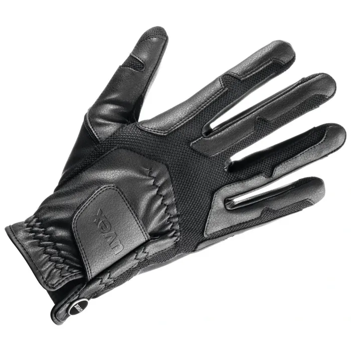 Rękawiczki jeździeckie UVEX Ventraxion to nowoczesna propozycja dla wymagających jeźdźców, którzy cenią komfort, styl i bezpieczeństwo. Wykonane z innowacyjnego materiału „4D”, zapewniają doskonałe dopasowanie do kształtu dłoni, gwarantując swobodę ruchów od nadgarstka aż po koniuszki palców. Mimo swojej miękkości i delikatności, rękawiczki są wyjątkowo trwałe i odporne na codzienne użytkowanie. Zastosowana technologia pozwala na utrzymanie pewnego chwytu wodzy w każdych warunkach pogodowych, dzięki świetnej przyczepności i wentylacji. Model UVEX Ventraxion jest przyjazny także dla kobiet z długimi paznokciami, co zwiększa komfort noszenia. Rękawiczki umożliwiają również korzystanie z ekranów dotykowych smartfonów i tabletów. Dodatkowo można je prać w temperaturze do 30°C, co ułatwia utrzymanie ich w czystości.