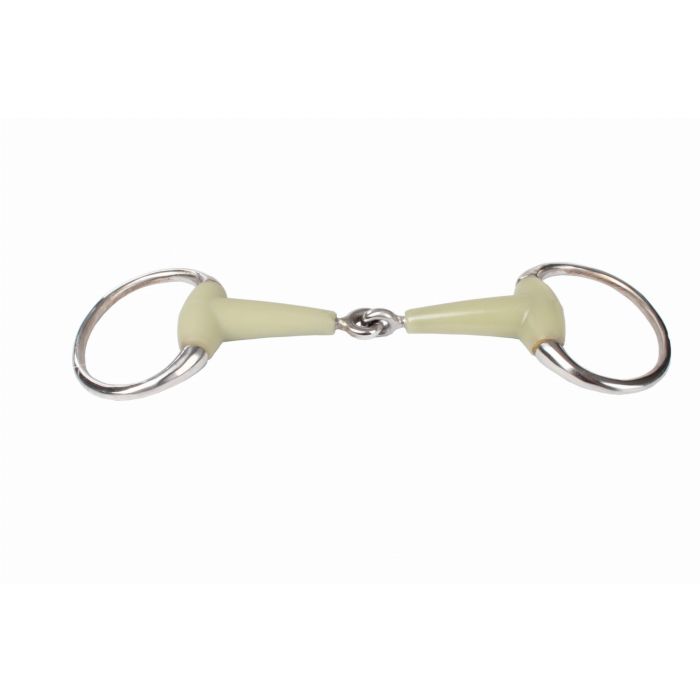 Wędzidło oliwkowe, pojedynczo łamane smakowe HORKA Apple ma rdzeń i pierścienie ze stali nierdzewnej. Smak jabłkowy ułatwia przyjęcie wędzidła. Wymiary: grubość: 20 mm, średnica pierścienia: 70 mm.