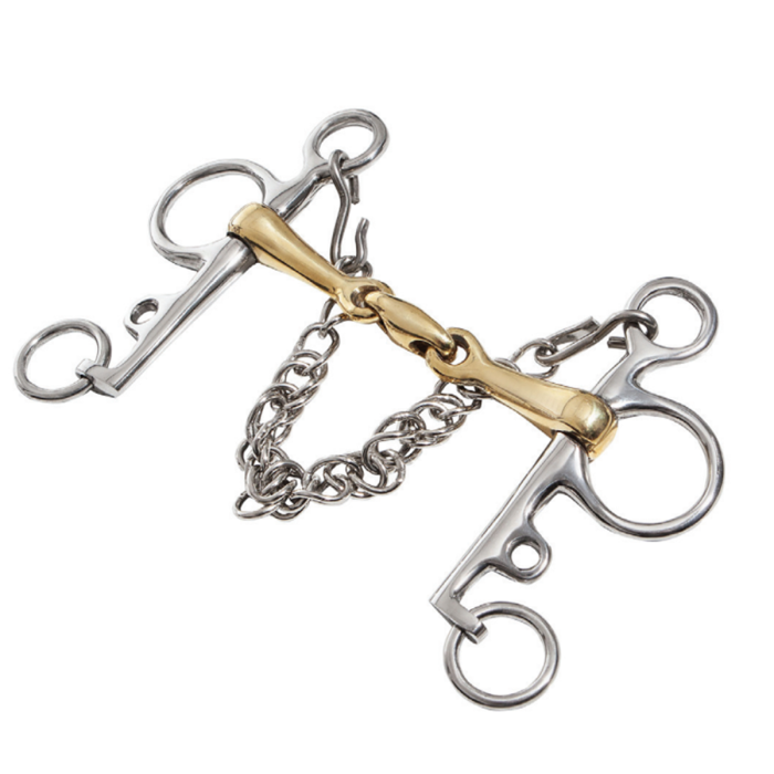 Do wędzidła dołączony jest łańcuszek, który zwiększa funkcjonalność i kontrolę nad koniem. Pomaga on równomiernie rozłożyć nacisk, zapewniając skuteczniejsze działanie wędzidła bez nadmiernego obciążania pyska konia. Jego obecność umożliwia dopasowanie siły działania do potrzeb treningowych i poziomu wyszkolenia konia. To rozwiązanie, które poprawia precyzję działania wędzidła, jednocześnie dbając o komfort zwierzęcia.